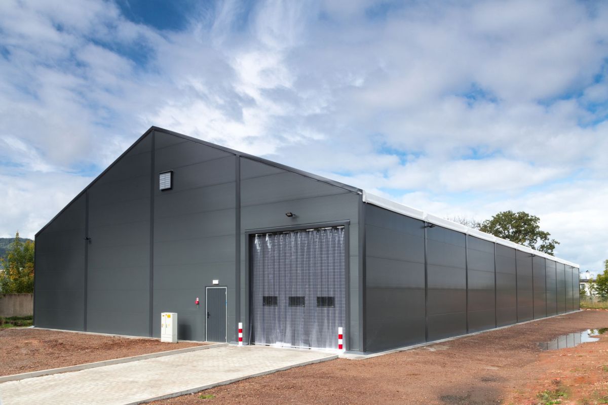 Les entrepôts temporaires de Portan Elmark peuvent être utilisés toute l'année. Ils sont fabriqués en PVC de haute qualité et durable, ce qui les rend résistants à la neige, à la pluie et au vent. Nos structures portables sont imperméables. Ceci est particulièrement important pour les clients britanniques, car les fortes précipitations ne sont pas inhabituelles là-bas.