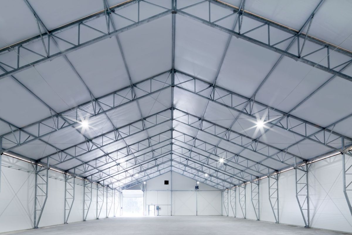 Les panneaux sandwich assurent une escellente isolation thermique. Une couverture en panneaux répond également à toutes les exigences des normes anti-incendie, c'est pourquoi elle est surtout utilisée pour la construction de tentes industrielles.